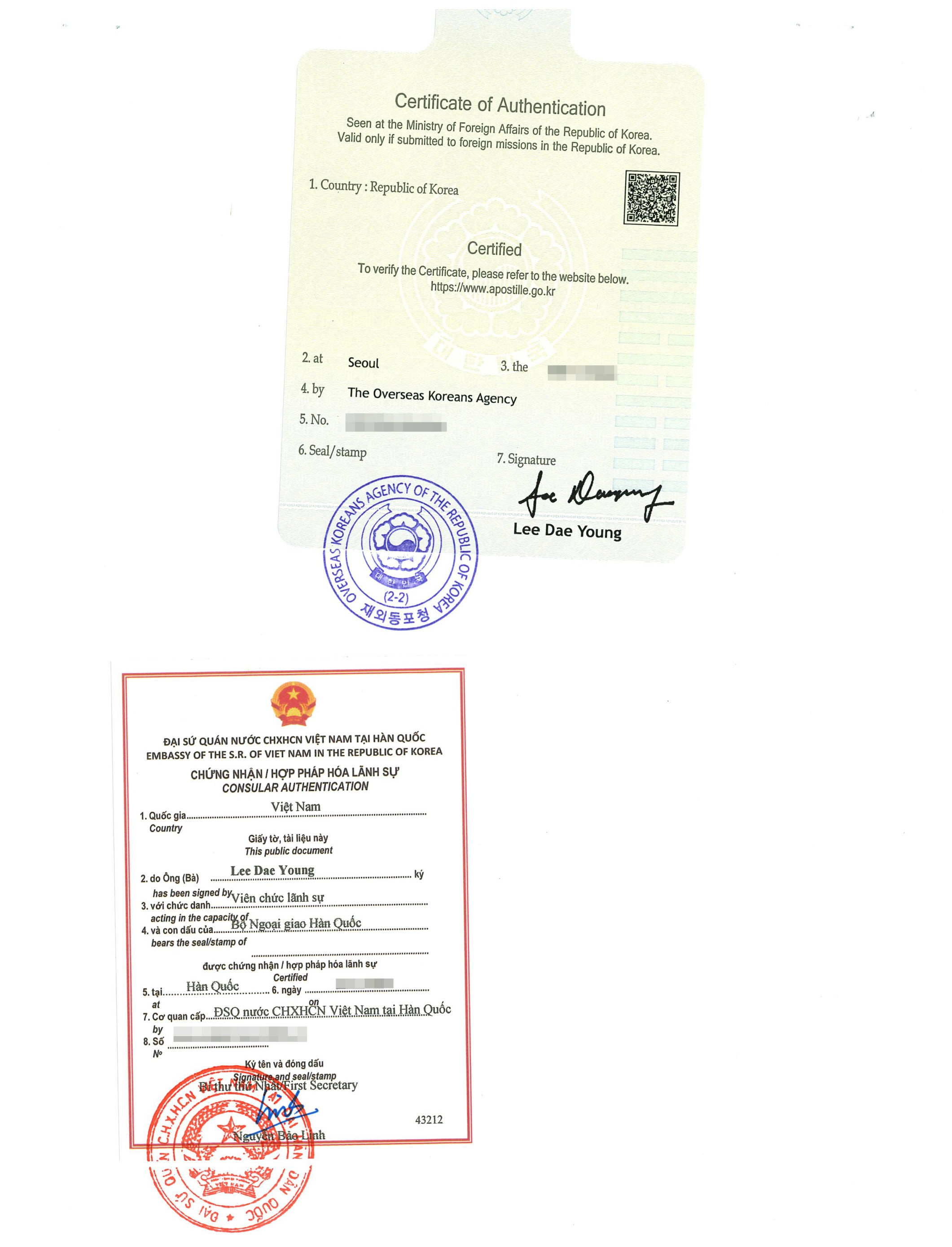 ② 영사확인 후 베트남어 번역공증