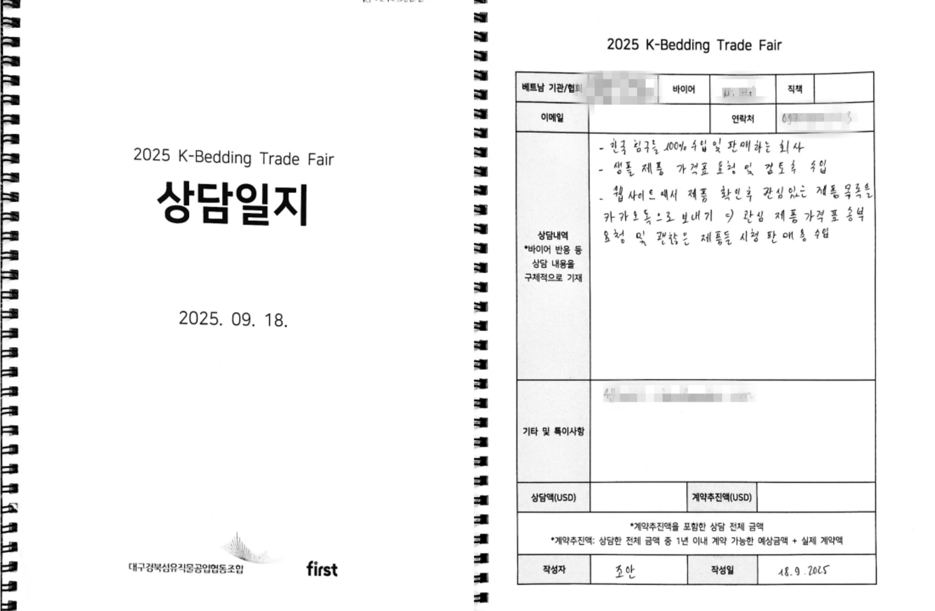 상담 결과, 바이어 반응, 향후 가능성 등을 정리해 내부 공유 및 후속 전략 수립에 활용할 수 있는 보고 자료를 구성합니다.