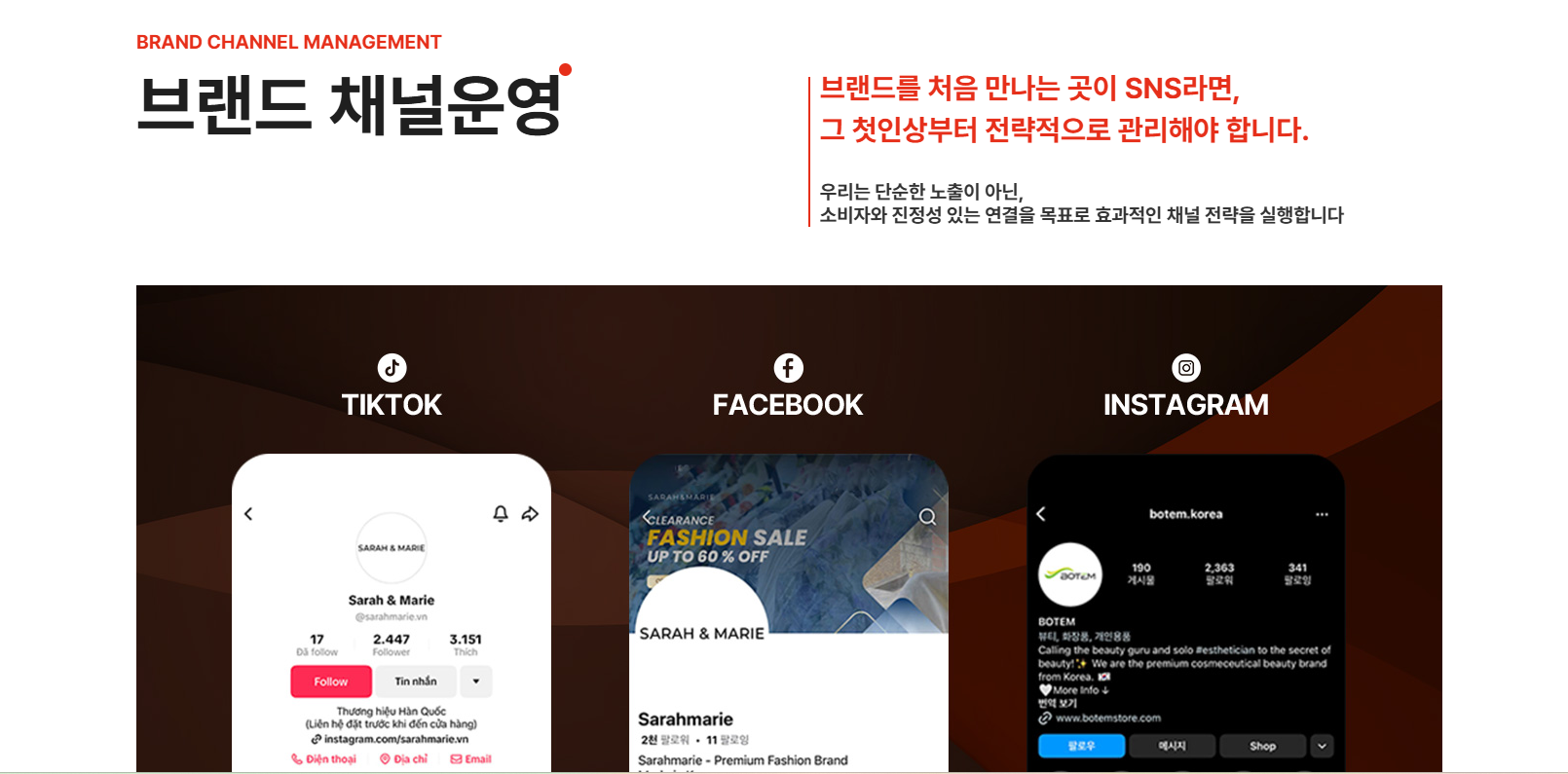 SNS 채널 운영을 전략적으로 관리해 소비자가 브랜드를 처음 접하는 순간부터 깊은 관심으로 이어지도록 설계합니다.