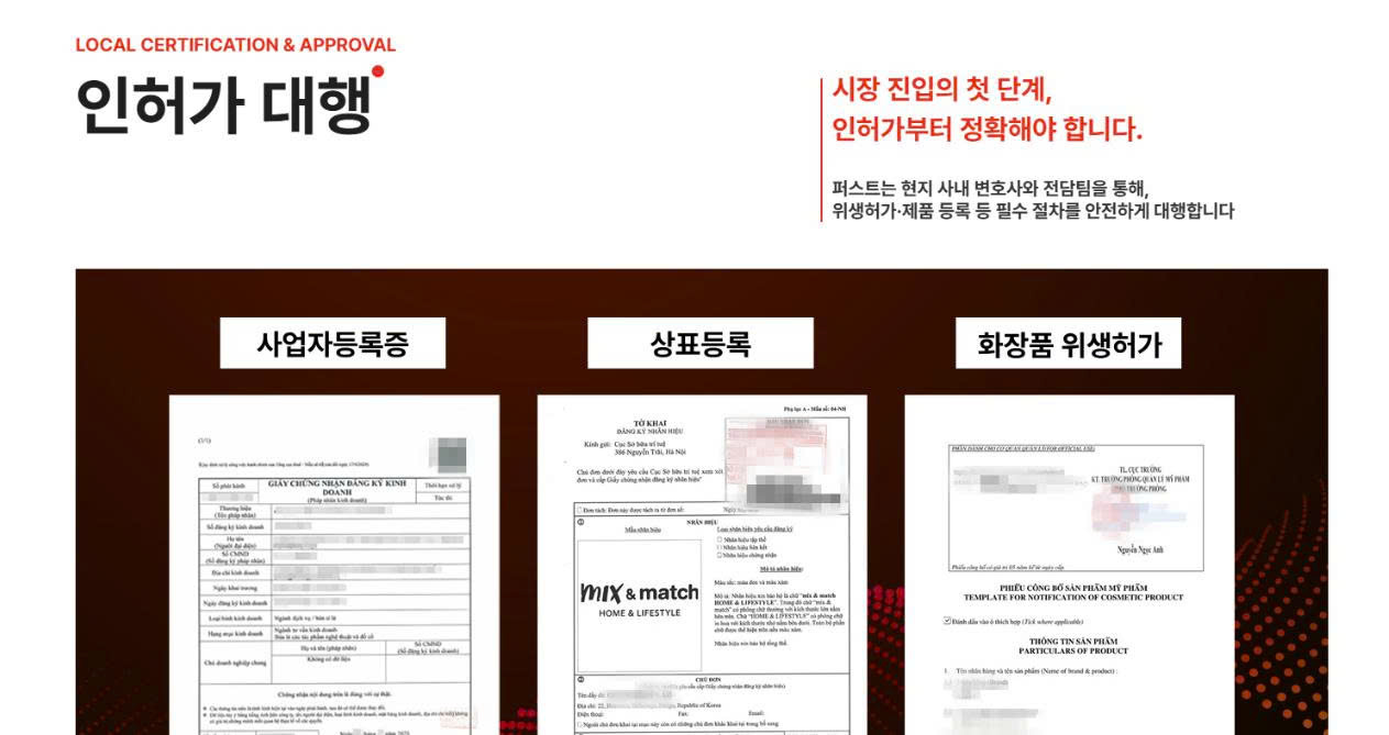 위생허가, 제품 등록 등 필수 현지 절차를 대행하며, 소비자·경쟁사 분석을 통한 실행 가능한 인사이트를 제공합니다.